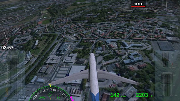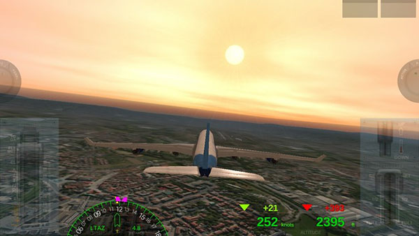 5、着陆模式,这是这个游戏的重点,我们需要先降低自己飞机飞行的高度,然后寻找到我们需要降落的跑到,接下来就是在空中调整自己飞机的姿态,使得自己的飞行角度和跑道的角度是一样的,然后慢慢的减速降落,落到跑道上时放下轮子进行慢慢减速直到停止。