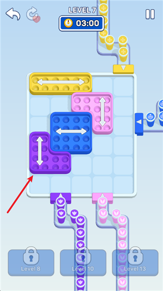 5、随着关卡的深入,游戏难度也会变高,比如出现只能按箭头方向移动的滑块。
