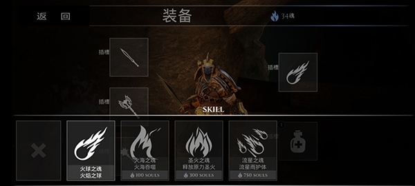 二、法术插槽:暗刃之魂小轮盘最下面第四个按键原来是给法术的,之前太心急都没开启,点击背包,点击右边上面的插槽就可以用魂购买法术了,总共四个法术,用了前两个(因为还没开完就通关了。