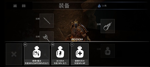 ③电+瓶:这个就厉害了,【健康+魔法】——恢复50%的HP和50%的法力,不过爆的比较少,初始的时候暗刃之魂地图上应该是三种瓶子都有一个,缺的话,多死几次就好了,死得多了啥就都有了。