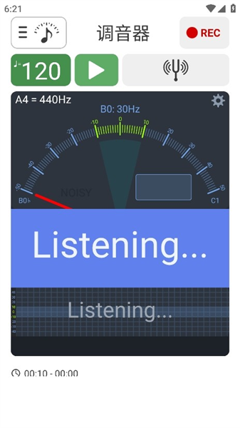 2、 双模式检测:提供半音调音器与标准音叉两种模式,前者适用于所有乐器,后者模拟传统音叉声音,满足不同调音习惯需求。