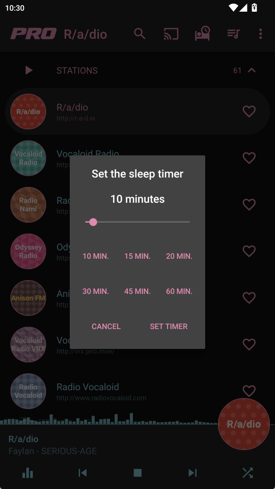 1、 丰富电台频道:内置超过六十个特色电台,涵盖动漫OST、流行金曲及摇滚乐,分类清晰便于快速定位喜好。