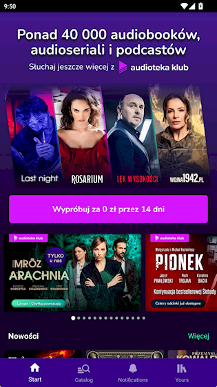 Audioteka是一款为声音爱好者打造的音频播放应用,汇聚海量有声读物、播客节目和电台栏目,自由探索各类声音内容,提供流畅的在线收听体验,可以收藏喜爱的内容方便随时回顾,根据播放偏好推送相关内容,帮助发现更多有趣的声音世界。
