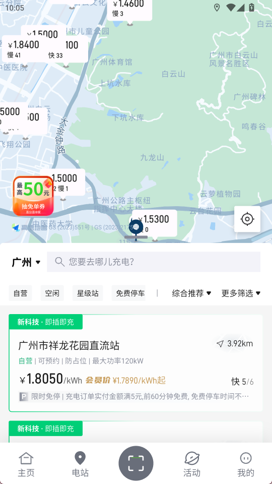 2、点击导航栏的“电站”,通过地图查看周边充电站