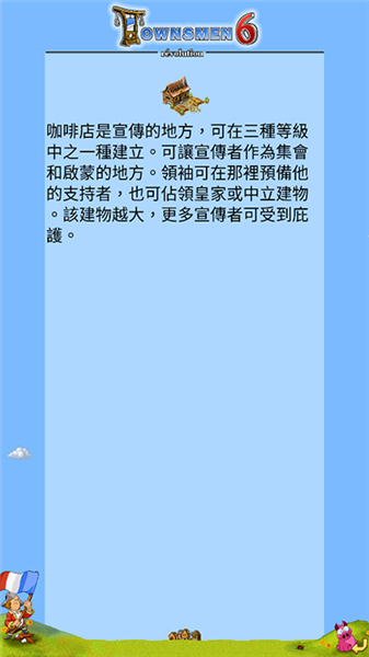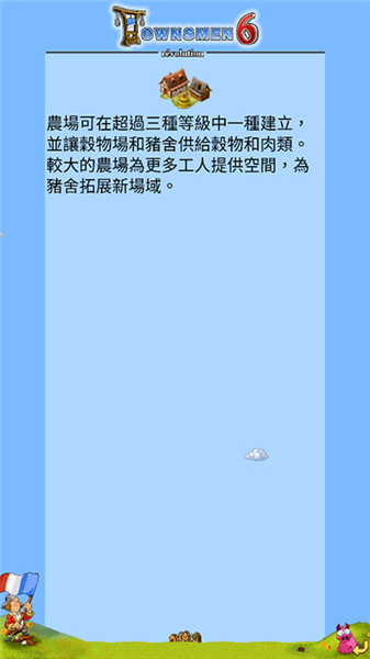 将生产建筑生产出的资源进行加工,制造出一些高级产品。需要消耗资源。加工建筑一共有三种:风车、面包房、冶炼厂。