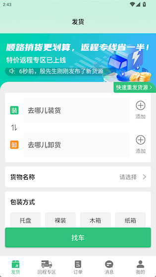 1、 一键发布货源:只需简单几步即可完成货源信息发布,省去繁琐操作,提高发货效率。