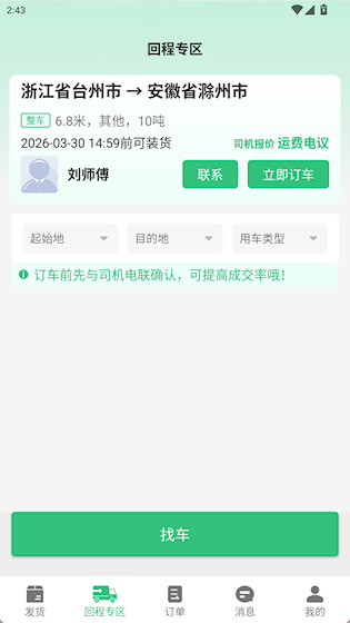 3、 实时沟通渠道:内置即时通讯工具,便于与承运方直接交流,及时确认细节与安排。