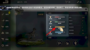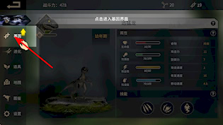 1、在游戏里击败生物能得到基因点数,拿到之后要留意基因点数的积攒状况,好为强化恐龙属性做准备。