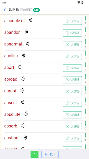 2、 词汇状态可视化:以颜色区分生词、学习中词汇与已掌握词汇,便于快速识别知识盲区。