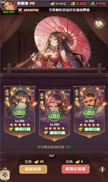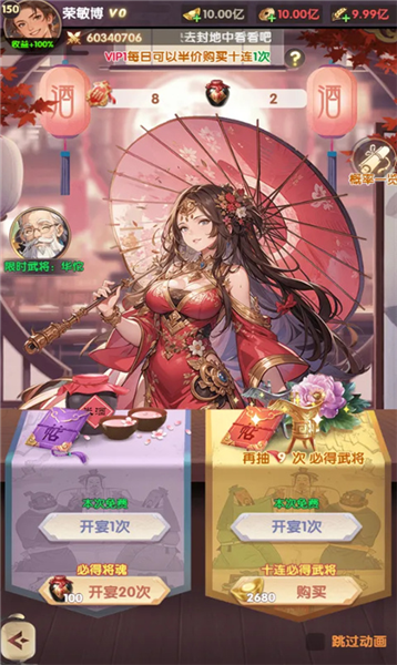 3、三国名将云集:可招募华佗、吕布、马超等强力武将,搭配羁绊、天赋、神器打造专属最强阵容。