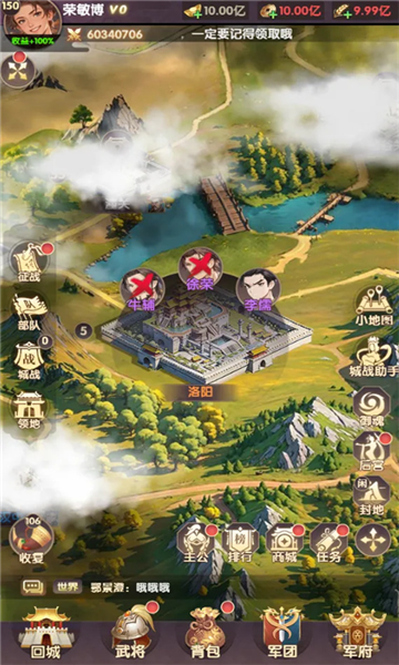 4.大世界征战玩法:在世界地图攻城略地、关卡挑战、剿匪夺宝,逐步扩张势力、收复城池称霸一方。