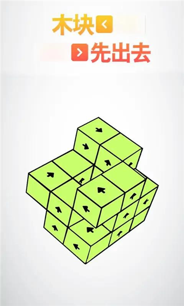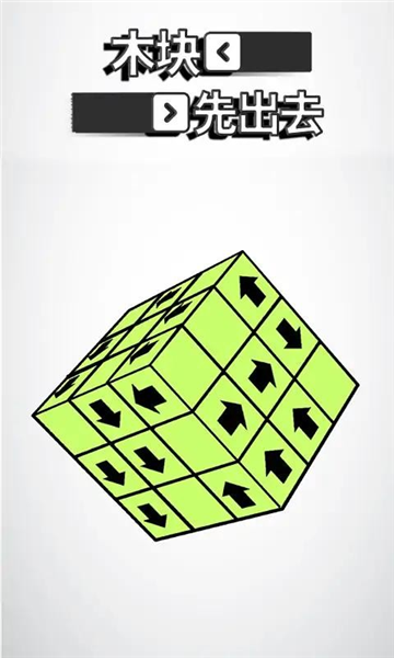 木块先出去安卓版是一款休闲闯关烧脑解谜游戏,整体画风十分清新卡通,玩家简单易上手,将在关卡内操控带有固定方向箭头的木块,通过旋转视角、点击操作让木块按箭头方向飞出,清空地图内所有的木块顺利通关,十分考验玩家的思维与脑力,感兴趣的玩家不要错过哦!