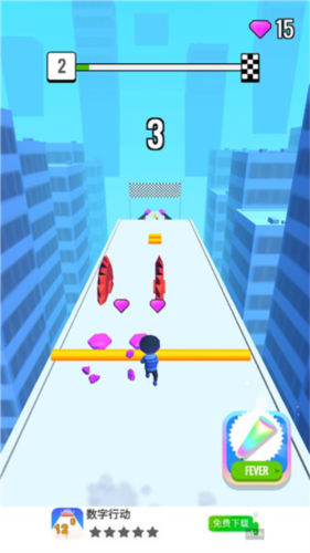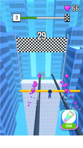 1、将操控可爱的角色在楼顶之间穿梭,核心技巧是尽可能多地收集地面上的短棍,只有不断增加手中长棍的长度,才能提升通关的希望,应对后续更难的挑战。