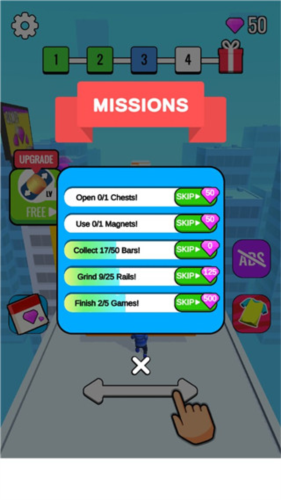 4、可在众多竞争对手中展现自身全部实力,争取胜利;游戏拥有独特玩法,沿途灵活收集金币等道具,应对无数关卡考验;整体操作简单易懂、趣味性强,通过左右摆动指尖即可完成各类任务,解锁更多道具与奖励。