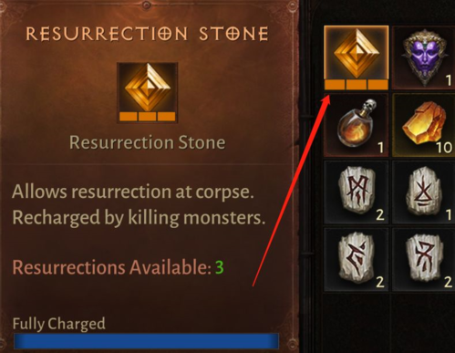 12、背包里有复活石,人物死亡后可以选择原地复活,最多可以复活3次,不足3次的,击败怪物会充能,充满后加1次复活次数;