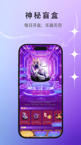 1、在线抽盒:支持随时随地在线拆盲盒,无需等待物流,抽盒惊喜即时到手,解锁沉浸式潮玩体验。