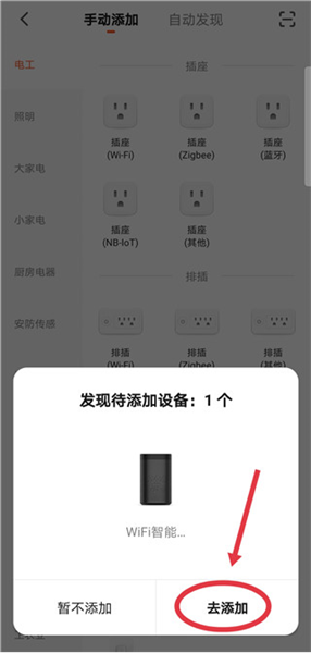 3、自动识别到设备时,直接点击去添加