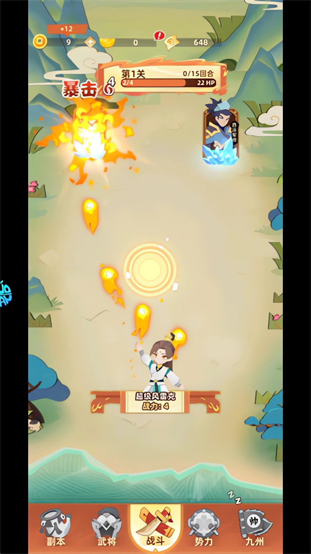 2、通过升级主公和武将提升伤害,金币可以通过闯关收集。