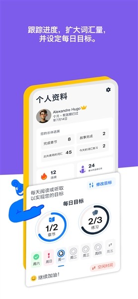3、 进度追踪系统:实时记录学习历程,清晰展示每日进步情况,激励持续投入并保持学习动力。