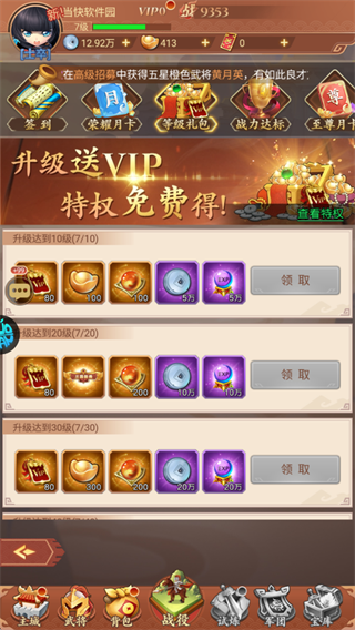 2.设置多种卡牌升级方式,可自由突破武将上限、提升武将品质、调整属性面板,全方位增强自身实力,解锁更多趣味玩法,满足不同培养需求。