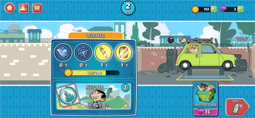 2、可自定义憨豆先生经典绿色迷你老爷车,通过更换车漆、车轮、车顶装饰与车尾配件打造专属座驾,集齐全部装饰还能解锁特殊奖励;提升等级可解锁更多升级项,为小车加装道具,让每次配送更具优势。