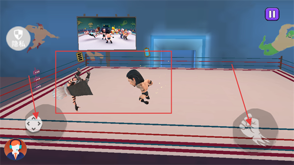 2、进入擂台后,使用左侧摇杆操控角色移动,点击右侧拳头按钮发起攻击,击败对手。