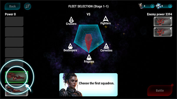 1、点击第一个地图进入,点击添加飞船开始闯关。