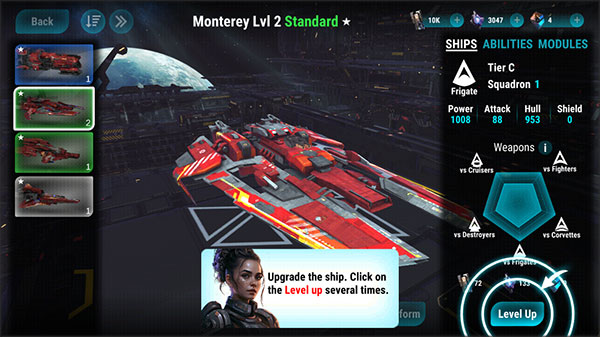 4、同时你还可以为你的飞船进行升级,提升战斗力。