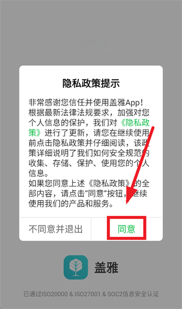 先同意隐私政策提示