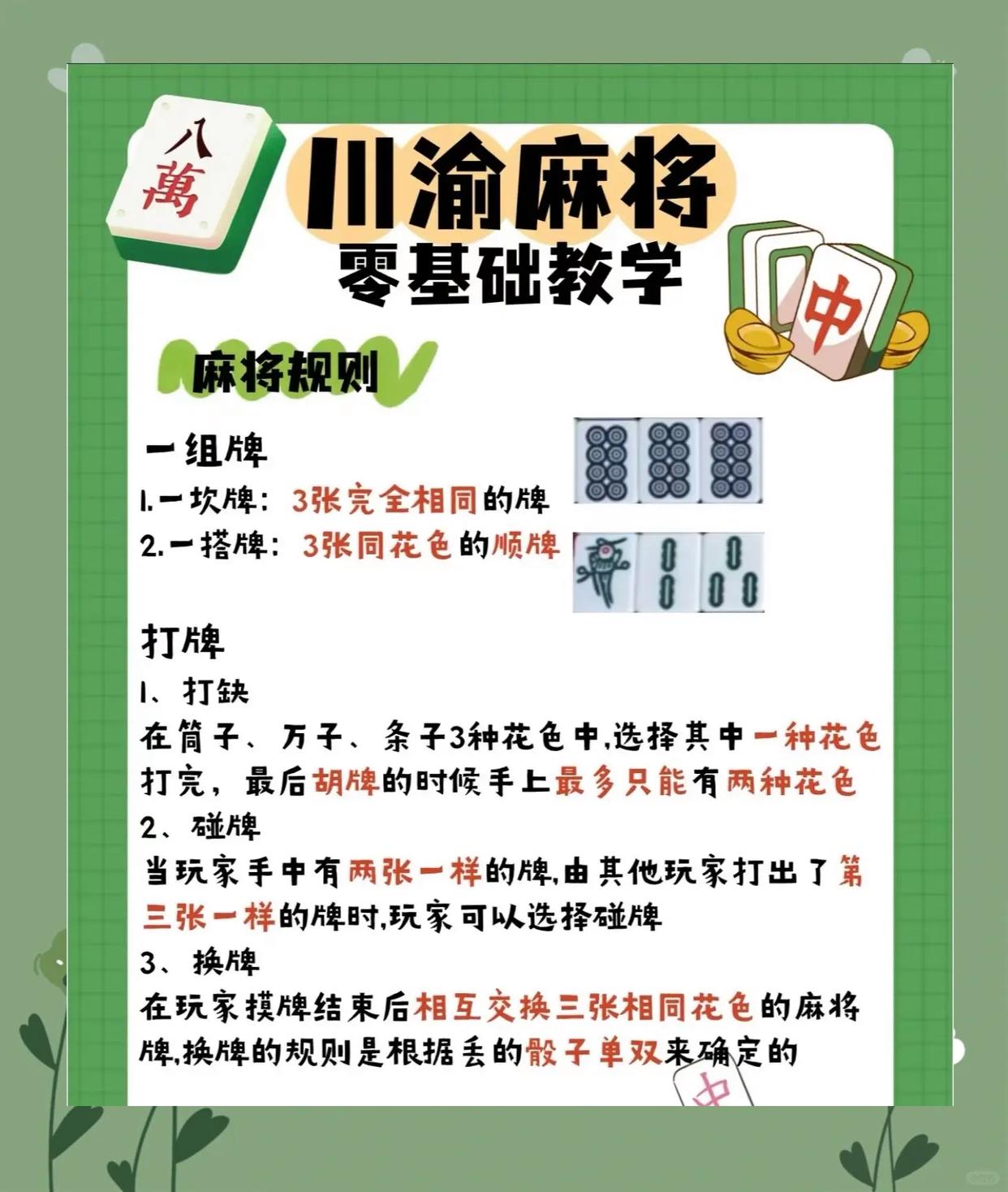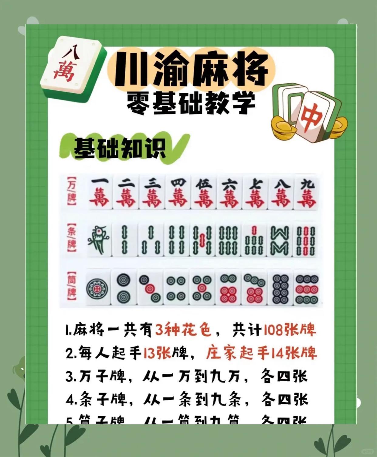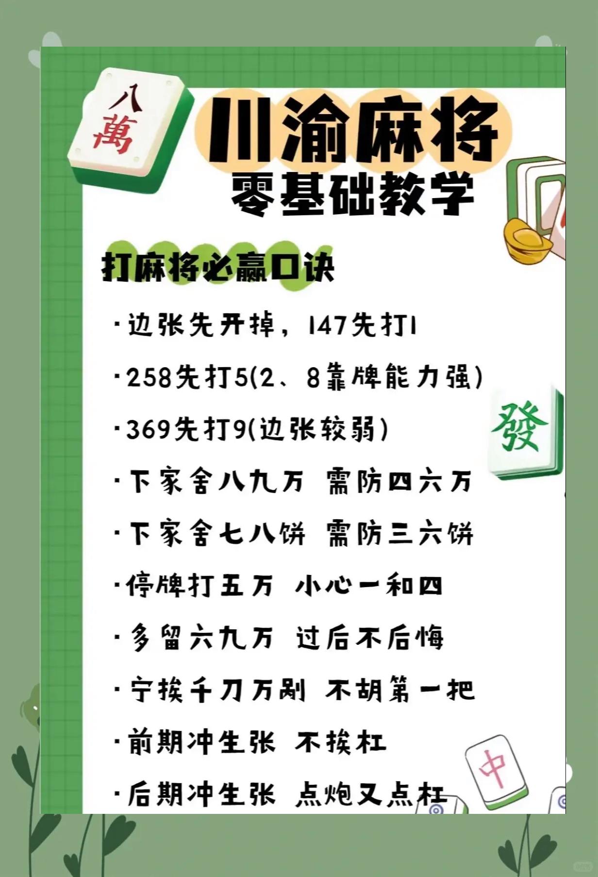 四川麻将,真的是一门深奥又有趣的学问,尤其对刚接触的新手来说。今天就带大家全面了解四川麻将的规则、胡牌方式以及实用进阶技巧!