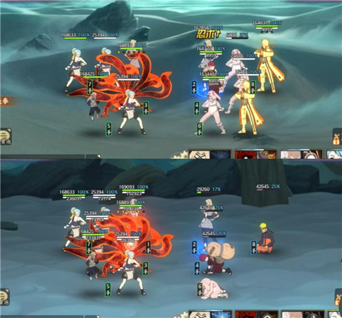 2、我方鸣人使用奥义,造成伤害,之后集齐尾兽点,奥义刷新;