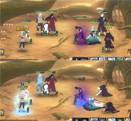 1、我方加藤断复活,我方鸣人治疗我方纲手,随后纲手再次使用奥义御,我方水主复活;