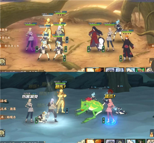 1、对方佩恩奥义,我方纲手抢先奥义,造成追打,击败对方佩恩和水主;