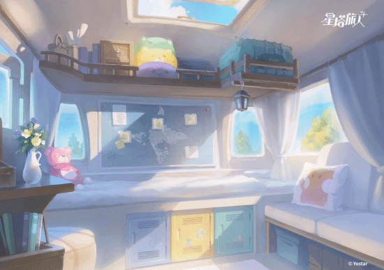 《星塔旅人》整体采用了风格鲜明的赛璐璐画风,以“旅行”为关键词,围绕旅人们的交通工具和具有“穿越感”的用品进行了全方位视觉构建,带来清新与活力感的画面表现。同时,游戏在场景设计的绘制中采用了水彩笔触,在保证美观的前提下,也能让角色在场景中更为突出。不仅如此,场景氛围的营造也会注重怀旧与现代的碰撞感,比如在魔法师的办公桌上放着电脑,复古起居室里摆着冰箱等,让奇幻与都市交织的新鲜感贯穿在体验之中。