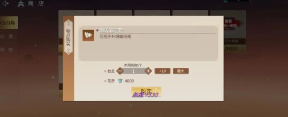 10、翠玉商城的周限购礼包、VIP礼包、VIP礼盒、琳琅阁(位置:福利——琳琅阁)的4折礼包有能力的刷新了就买完。心境商城每周限购的洗髓丹、真元丹优先购买真元丹。师徒商店的修炼丹和家族传功丹优先购买修炼丹。
