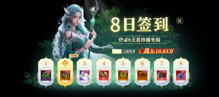 登录8天,天天领不同惊喜!登录即送SSR珍稀坐骑【小黄蜂】、精美羽翼外观、头像框等好礼!8日登录送极品坐骑【云端勇者】