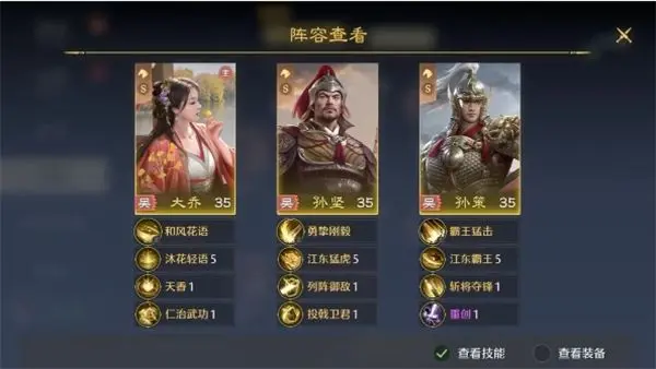 1. 平民队(大乔+孙策+孙坚):大乔必须当主将,其主将技对男性武将的加成能让孙策吸血效果提升30%,孙坚威压技能优先点满,控制链拉满可降低50%兵损;无大乔时用蔡文姬替代,需把治疗技能点到6级。