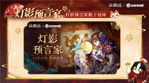 网易《狼人杀》×《决战!平安京》联动活动12月12日正式开启,活动期间,参与活跃任务,即可赢得限定奖励,联动表情、彩蛋称号等惊喜福利等你来拿;全新联动五星时装同步上线,邀你变身为平安京式神;还有灯影预言家板子限时返场、联动彩蛋时装等福利内容等你来解锁!