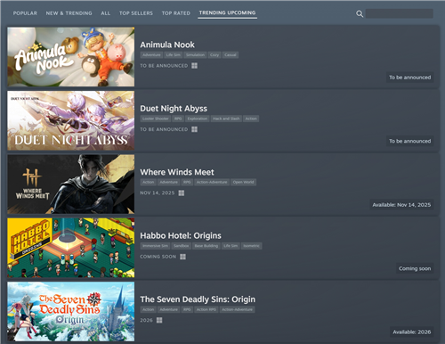 首曝即霸榜Steam新游趋势榜