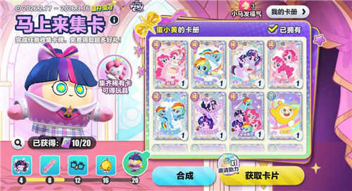 收集小马卡片,即可免费获得《小马宝莉》联动外观、昵称框、配饰等友谊好礼。用集卡册,记录马年的一切美好~