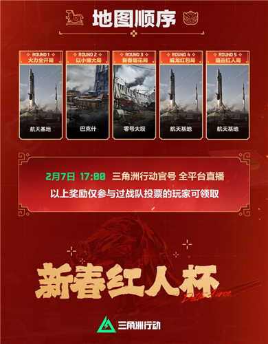 三角洲新春红人杯也将于2月7日17:00开启,看红人赢大红指数,玩投票领福利奖池!