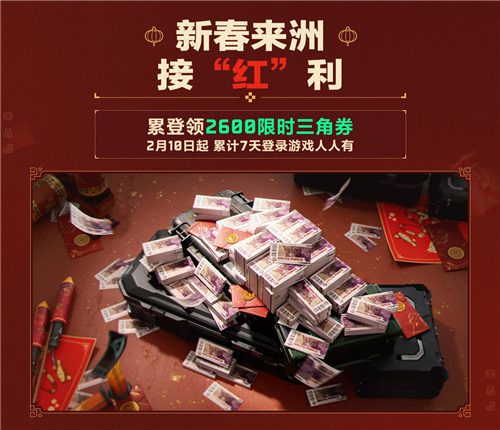 新春来洲接“红”利!2月10日-2月23日,累计7天登陆游戏,领取2600限时三角券!最快2月16日当天有机会全部领取完毕!