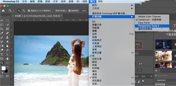 4.重启PS,在顶部菜单,窗口-扩展-Perspective Tools 2